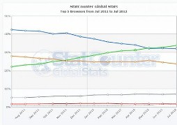 در ماه May آنها اعلام کردند که گوگل کروم از مرورگر اینترنت اکسپلورر در زمینه معروف ترین و پر استفاده ترین مرورگر پیشی گرفته است. در آخرین نتایج آنها که از تاریخ جولای ۲۰۱۱ تا جولای ۲۰۱۲ بوده نیز تغییر زیادی حاصل نشده است. کروم هنور هم بیشترین سهم را با ۳۳.۸۱ در اختیار دارد که این سهم در حدود یک سوم کل بازار مرورگرهاست. در مکان دوم اینترنت اکسپلورر با ۳۲.۰۴ قرار دارد و بعد از آن، به ترتیب فایرفاکس با ۲۳.۷۳، سافاری با ۷.۱۲ و اپرا با ۱.۷۲ قرار دارند.