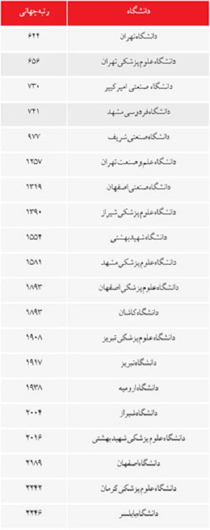 رتبه دانشگاه های ایران در جهان (جدول)