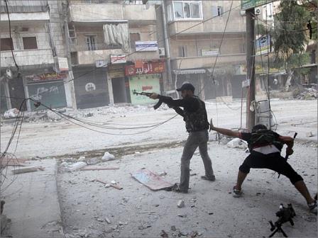 مخالفان مسلح در درگیری با ارتش سوریه در شهر حلب - منبع: شبکه الجزیره