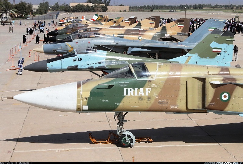 مشرق - انواع هواپیماهای رزمی نیروی هوایی ارتش جمهوری اسلامی ایران شامل بمب افکن تاکتیکی سوخو-24، رهگیرهای میگ-29 و اف-14، جنگنده بمب افکن های اف-4ئی، اف-4دی، میراژ اف-1، اف-7، اف-5 و صاعقه و آذرخش و جت آموزشی-رزمی سیمرغ در کنار هم دیده می شوند.