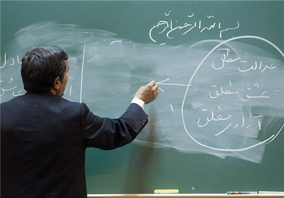 این در حالی است که این جملات در «اجلاس وحدت و انسجام ملی جوانان ایرانی» و از سوی احمدی نژاد بر روی تخته سیاه وسط سالن نوشته شده است و عکس های آن نیز بر روی پایگاه اطلاع رسانی ریاست جمهوری قرار دارد.