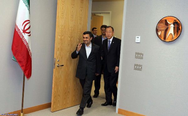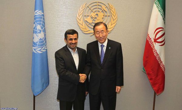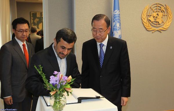 عصر ایران - محمود احمدی نژاد رئیس جمهور ایران یکشنبه شب به وقت محلی (بامداد امروز دوشنبه به وقت تهران) با بان کی مون دبیر کل سازمان ملل متحد در مقر این سازمان در نیویورک ملاقات کرد.