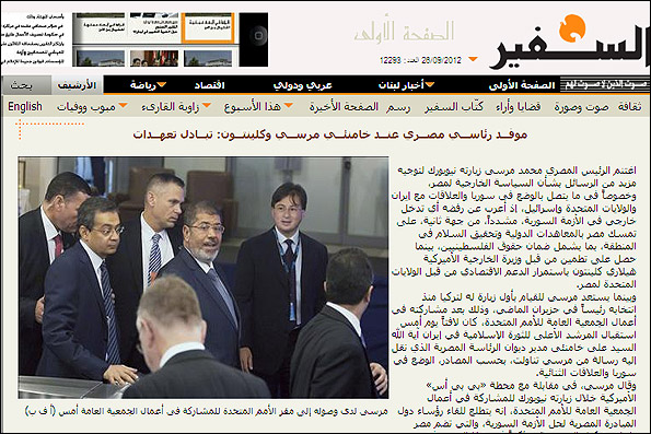 به گزارش مهر، روزنامه السفیر لبنان امروز در گزارشی به تلاشهای "محمد مرسی" رئیس جمهور مصر در زمینه حل بحران سوریه با مشارکت جمهوری اسلامی ایران اشاره کرده است.