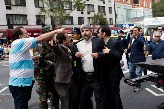 عصرایران - سخنگوی وزارت امور خارجه کشورمان که به همراه رئیس جمهور در نیویورک به سر می برد ، روز گذشته هدف حمله برخی عناصر ضدانقلاب شد که پرچم های ایران در دوران ستمشاهی و سوریه را در دست داشتند.