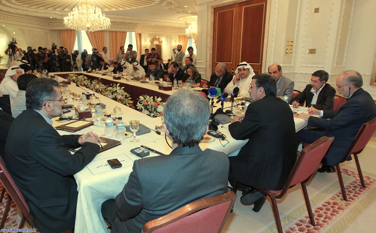 احمدی نژاد در پاسخ به سؤالی درباره برخی اظهار نگرانی ها در کویت از نیروگاه اتمی بوشهر گفت: در اطراف بوشهر، 12 میلیون ایرانی زندگی می کنند. همانطور که به فکر سلامتی این مردم هستیم، به فکر سلامتی مردم کویت هم هستیم. آمریکا به اشتباه در حال معادل سازی نیروگاه اتمی با بمب اتمی است ولی واقعیت اینگونه نیست.