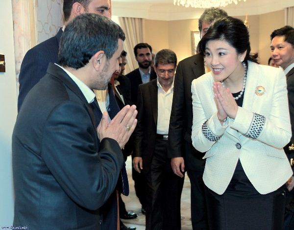 عصر ایران - محمود احمدی نژاد رئیس جمهور ایران و خانم يينگلاك شيناواترا، نخست وزير تايلند در حاشیه نشست بین المللی مجمع آسیایی در کویت با یکدیگر دیدار کردند. این دیدار درخواست طرف ایرانی و در محل اقامت نخست وزیر تایلند انجام شد.