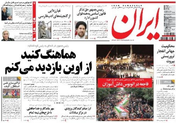 شماره امروز یکشنبه روزنامه ایران (ارگان دولت)
