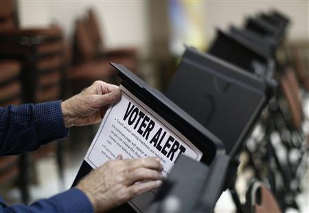 آماده سازی مرکز رای گیری در شهر  Pineville در کارولینای شمالی