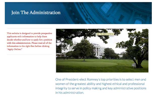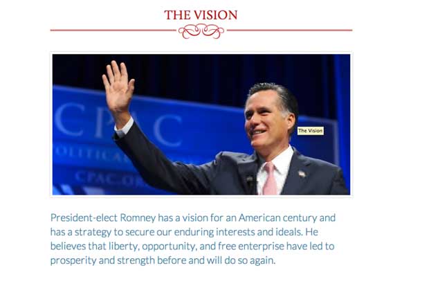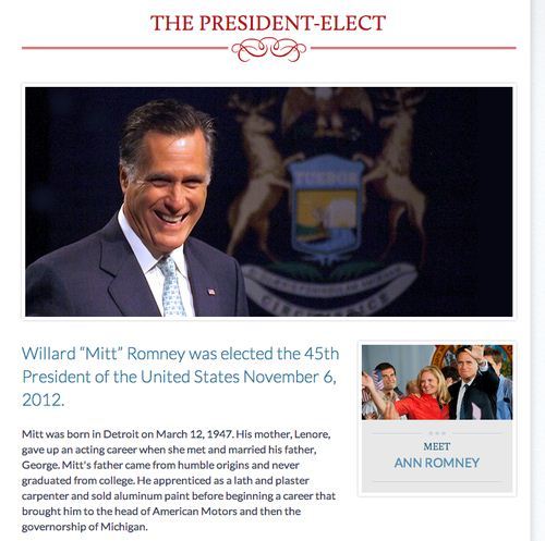 میت رامنی کاندیدای جمهوری خواهان در انتخابات ریاست جمهوری آمریکا به اندازه ای به پیروزی خود در این رقابت اطمینان داشت که حتی وب سایتی برای پیروزی خود ایجاد کرده بود.