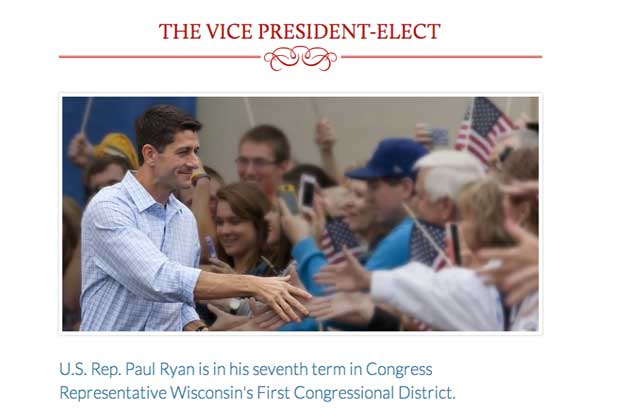 عکس هایی از پل راین معاون رامنی به عنوان معاون رئیس جمهور جدید آمریکا نیز در این سایت منتشر شده است که در حال پاسخ به ابراز احساسات هواداران است.