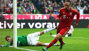 گل های بایرن را فرانک ریبری در دقیقه 44 و آلابا از روی نقطه پنالتی در دقیقه 76، وارد دروازه حریف کردند.