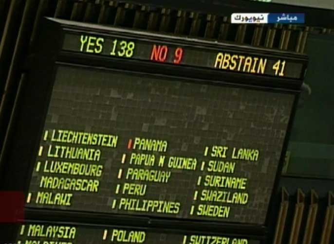 رای مخالف و 41 کشور هم رای ممتنع دادند. مجمع عمومی سازمان ملل متحد
