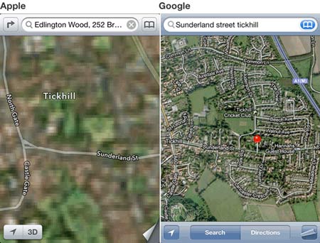 این شرکت سپس روابط خود را با گوگل قطع و اعلام کرد و پس از طراحی سیستم عامل iOS 6 صرفا خدمات نقشه اختصاصی خودش را ارائه میدهد اما زمانی که کاربران استفاده از این خدمات را آغاز کردند متوجه نقصهای فنی و اطلاعات اشتباه آن شدند.