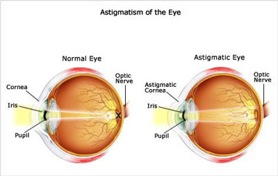 چشم انسان کروی است و در شرایط عادی زمانی که نور به داخل چشم راه میابد، ممکن است منکسر و یا منحرف شود و با این شرایط یک تصویر واضح از منظره، در مغز جای می گیرد. اما چشمی که دچار آستیگماتیسم است، بیشتر به شکل توپ راگبی و یا انتهای یک قاشق در می آید. برای این دسته از افراد زمانی که نور وارد چشم می شود، نور به جهات بیشتری منکسر می شود و همین پدیده سبب می شود تا وی تنها نقطه خاصی را واضح ببیند و بقیه نقاط در فواصل دیگر به صورت تار و یا مواج دیده شوند.