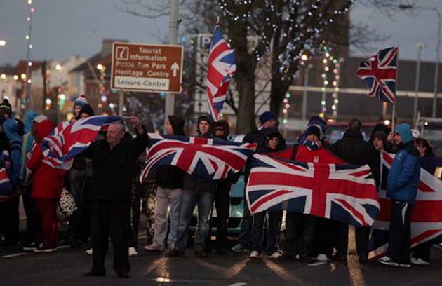 عصر ایران تظاهرات از سوی طرفداران اتحاد با بریتانیا صورت گرفت و بهانه آن تصمیم هفته گذشته شورای شهر بلفاست در محدود کردن نصب پرچم بریتانیا در این شهر بود.