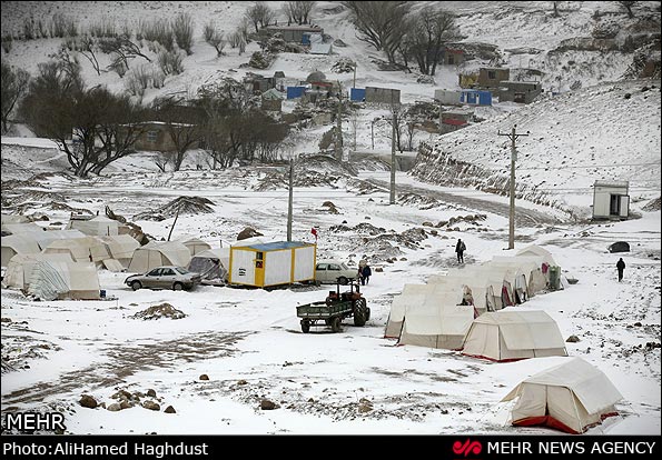 بارش برف در مناطق زلزله زده ارسباران (عکس)