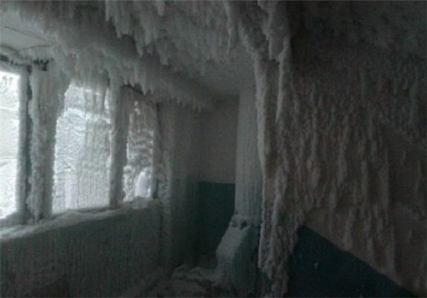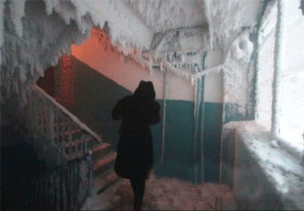 آنچه در زیر میبینید تصویری از راهروی یک مجتمع مسکونی در کاراگاندای قزاقستان است که در آن سردی هوا به منفی 59 درجه سانتیگراد رسیده است و در داخل ساختمان هم قندیلهای یخ بر دیوارها تشکیل شده است.