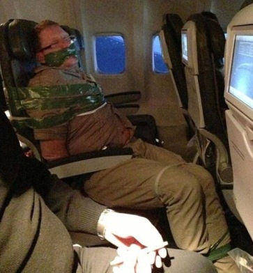 مسافر مستی که با حرکات غیر قابل کنترل نظم هواپیما را بر هم زده بود، تا زمان فرود هواپیما با نوارچسب مهار شد.