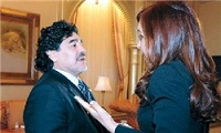 فارس - کریستینا فرناندز، رییس جمهور آرژانتین با دیگو مارادونا، افسانه فوتبال آرژانتین که سفیر افتخاری ورزش امارات محسوب میشود در هتلی در پایتخت امارات (ابوظبی) دیدار و گفت و گو گرد.