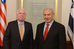 نتانیاهو در دیدار با مک کین و هیئت همراه او همچنین از مواضع و حمایت های همه جانبه و بی شائبه سناتورهای جمهوریخواه و دموکرات آمریکایی در حمایت و پشتیبانی از رژیم اسراییل تشکر کرد.