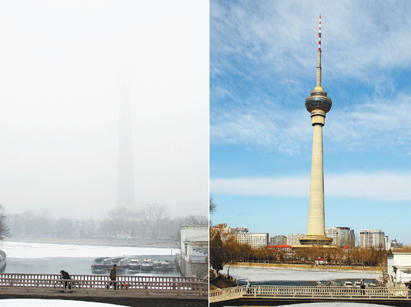 آلودگی هوای پکن(تصویر مقایسه ای)