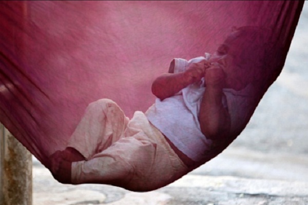 کودک در تخت خوابی که مادرش آماده کرده، استراحت می کند- بمبئی، هند محله ای در گائو، مالی "برای مشاهده آلبوم تصاویر کلیک کنید"