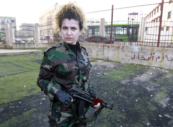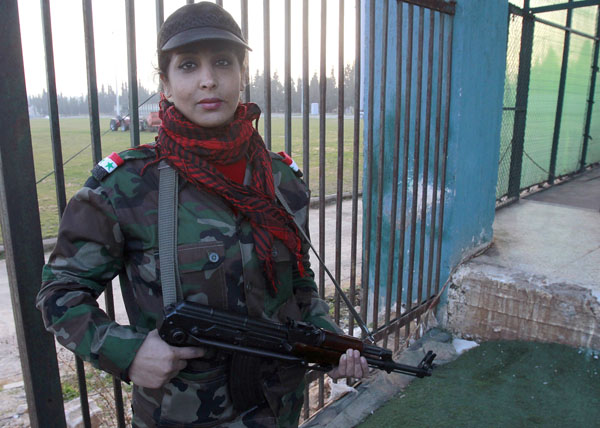 "عبیر رمضان" یکی از زنان داوطلب در این پادگان است که در سن چهل سالگی به نیروهای نظامی سوریه پیوسته است تا در جنگ علیه مخالفین اسد در کنار بشار بایستند؛ او در حالی که لباس نظامی به تن دارد در این پادگان در مرکز حمص همچنان که شعار "خدا، سوریه، بشار، همین و بس" را سر میدهد، رژه میرود.