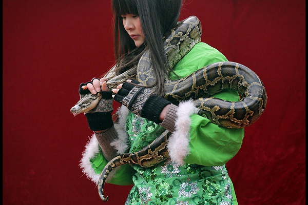 مدل چینی با یک مار پیتون در مراسم ویژه سال نو چینی-پکن حاشیه یک فستیوال آیینی در الله آباد، هند "برای مشاهده آلبوم تصاویر کلیک کنید"