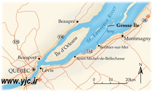 در سال 1845 تا 1849 یک قحطی سیب زمینی در ایرلند به وجود آمد که باعث شد بسیاری از مردم این کشور خانه خود را ترک کنند و راهی کشورهای دیگر شوند. یکی از اهداف آن ها کبک کانادا بود اما دولت این کشور مهاجران ایرلندی را تنها در جزیره "Grosse Island" ساکن کرد. در این جزیره به خاطر بیماری های به وجود آمده و تیفوس بیش از 10 هزار ایرلندی جان خودشان را از دست دادند و افراد بسیار کمی توانستند از آن خارج شوند.