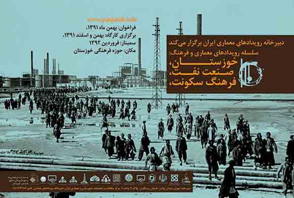 کارگاه «خوزستان، صنعت نفت، فرهنگ سکونت»، از ۱۰ تا ۱۳ اسفند ماه در قالب سفر ۴ روزه به استان خوزستان برگزار و همایش این کارگاه با حضور شرکت کنندگان و اساتید علمی در روزهای ۲۰ و ۲۱ فروردین ۱۳۹۲ برپا می شود.