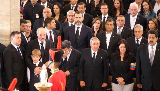 عصر ایران - محمود احمدی نژاد رئیس جمهور ایران در مراسم خداحافظی با جنازه هوگو چاوز رئیس جمهور متوفی ونزوئلا در کارآکاس ، اشک ریخت.