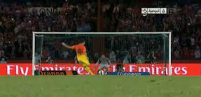 مسی پشت توپ قرار گرفت تا ضربه پنالتی را بزند ولی ضربه محکم او به تیر افقی دروازه پتر چک خورد و راهی اوت شد. پنالتی هدررفته مسی، زمینه ساز حذف بارسا از چمپیونز لیگ شد. به همین راحتی!