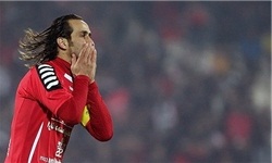 *علی کریمی در هتل کادوس محل استقرار قرمزپوشان با سعید راد یکی از هنرپیشههای سینما دیدار کوتاهی داشت.