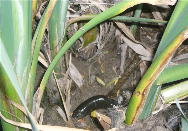 شاماسبی مار، ماهیقزلآلا را شکار میکند و ماهی آنقدر برای حفظ جانش