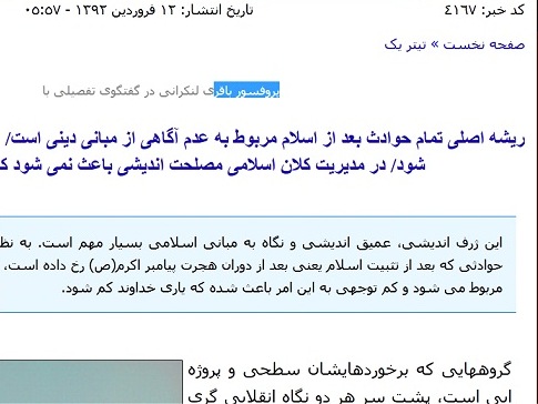 فردا - یک سایت نزدیک به پایداری در گفتگویی با باقری لنکرانی وزیر سابق احمدی نژاد از وی به عنوان پرفسور لنکرانی یاد کرد! باقری لنکرانی که از او به عنوان کاندیدای نهایی پایداری نام برده می شود،پزشک و متخصص بیماری های گوارش و کبد است.