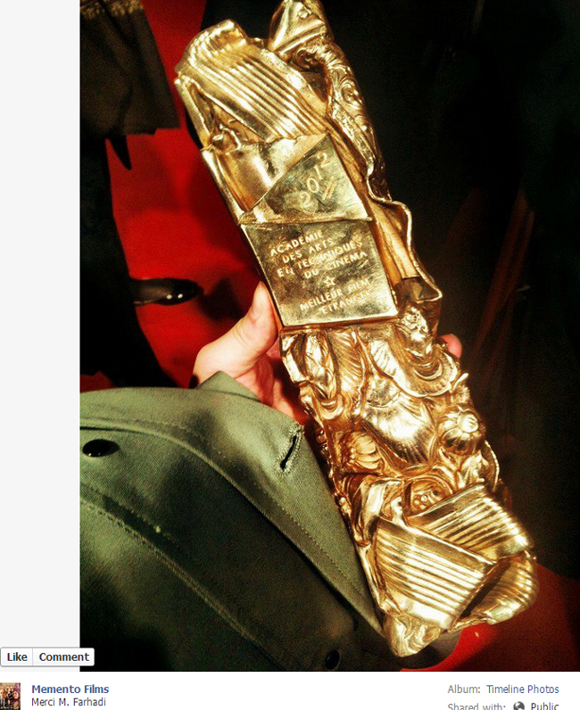کمپانی ممنتو فیلم به عنوان سرمایه گذار فیلم تازه اصغر فرهادی با انتشار تصویر جایزه مشهور سزار که اسکار فرانسه محسوب می شود، «عبارت مرسی، آقای فرهادی» را در زیر آن درج کرده و این نشان می دهد که این کمپانی خود را برای موفقیتی جهان با این فیلم پس از ارزیابی اولیه اش مهیا کرده است؛ فیلمی که داستان یک جدایی را این بار در فضای فرانسه روایت می کند و تریلر فیلم به شکل مشخص این بخش از داستان فیلم را لو می دهد و البته باید دید فرهادی و تیمش، چه حرف تازه ای در این اثر بلند سینمایی خواهند داشت.