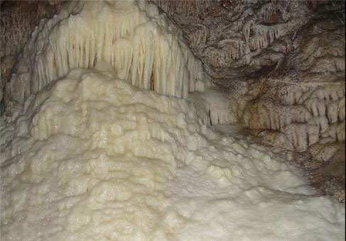 در بخشی از مسیر این غار، تالارهایی وجود دارد که پوشیده از قندیل است و اشکال موجود در این تالارها شبیه مجسمههای کریستالی هستند.