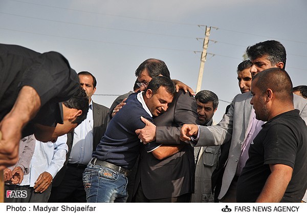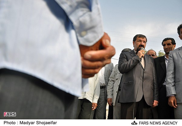 محسن رضایی در مراسم خاکسپاری جانباختگان زلزله در خورموج حضور یافت و با زلزله زدگان دیدار کرد.