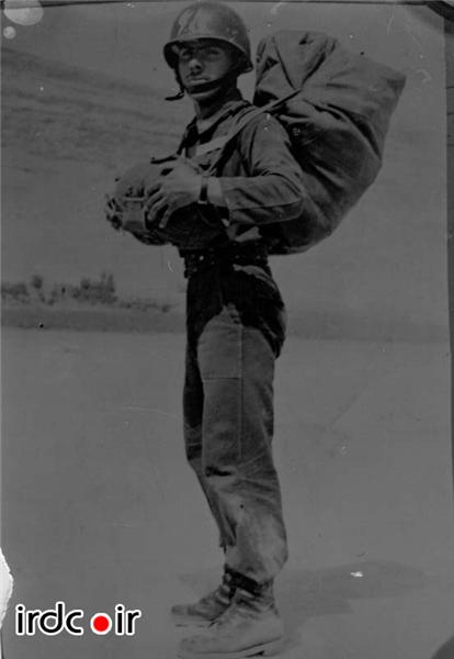 شهید علی صیاد شیرازی در دوران جوانی در حال آموزش چتربازی