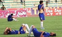 صحنهای از بازیکنان تیم صنعتی خوزستان پس از شکست خانگی برابر فولاد یزد