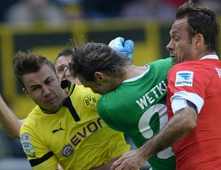 دورتموند دیگر آلمانی حاضر در نیمهنهایی لیگ قهرمانان اروپا در خانه خود پذیرای ماینتس بود و در پایان مهمانش را با دو گل بدرقه کرد. رویس در نخستین دقیقه بازی میزبان را پیش انداخت. در ادامه تلاش دو تیم برای باز کردن دروازههای یکدیگر تا سه دقیقه مانده به پایان بازی ثمری نداشت. روبرت لواندوفسکی، مهاجم لهستانی دورتموند در دقیقه 87 برتری تیمش را دو برابر کرد تا دورتموند هجدهمین پیروزی فصل خود را شاهد باشد. این تیم در میانه هفته جاری پذیرای رئالمادرید در نیمهنهایی لیگ قهرمانان اروپاست.