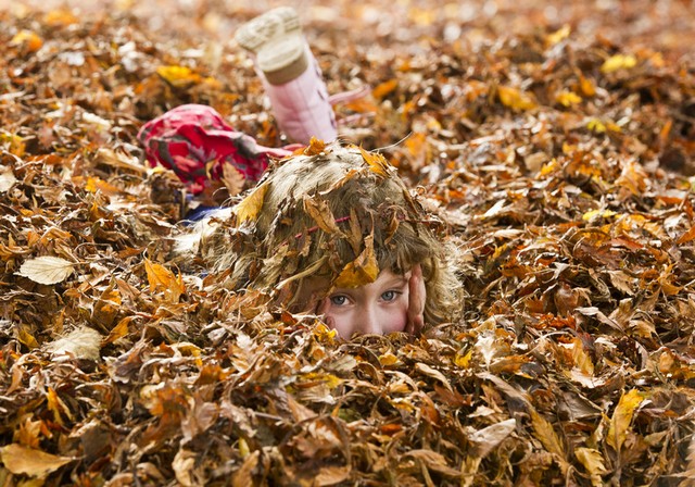 دختر بچه نیوزیلندی در حال بازی در طبیعت پاییزه یک پارک. هم اکنون در نیوزیلند به دلیل اینکه در نیمکره جنوبی واقع است، فصل پاییز است