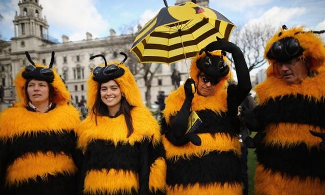اجتماع هواداران حقوق زنبورها در لندن برای محدود کردن استفاده از سموم دفع آفات