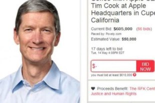 ملاقات با رئیس شركت اپل بین 30 دقیقه تا یك ساعت به طول می انجامد و هزینه رفت و آمد به عهده برنده حراج است