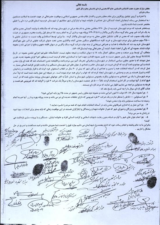 نامه به دادستان کل کشور درباره حوادث شهر خرمبید (+عکس)