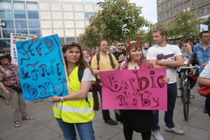 مادران و پدران آلمانی در اعتراض به افتتاح نمایشگاهی که عروسکهای "باربی" را در حجمهای طبیعی به نمایش گذاشته،در مقابل آن به راهپیمایی پرداختند.