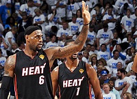 ایسنا) - در ادامه رقابت های مرحله نهایی لیگ بسکتبال حرفه ای آمریکا (NBA)، دو تیم میامیهیت و ایندیانا پنجمین فینال خود در کنفرانس شرق را برگزار کردند که این دیدار با نتیجه 90 بر 79 به سود مدافع عنوان قهرمانی به پایان رسید. لبرون جیمز ارزشمندترین بازیکن این فصل رقابت با کسب 30 امتیاز، 8 ریباند و 6 پاس منجر به گل نقش مهمی در پیروزی میامی هیت داشت.