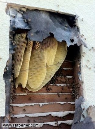 اين مرد روسي با شكافتن سقف خانه اش متوجه وجود شانه هاي بكر عسل توليد شده توسط زنبورهاي حاضر در محل در سقف خانه اش شد.