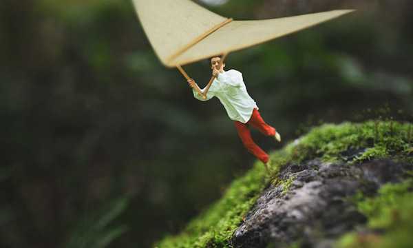 دراین عکس های خیالی مردم به صورت دیجیتالی کوچک شده اند و می توانند به راحتی درون یک قایق کاغذی جا شوند و با هواپیمای کاغذی پرواز کنند.