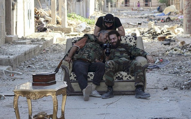 شوخی و خنده مخالفان مسلح حکومت سوریه در ویرانه های شهر دیروالزور